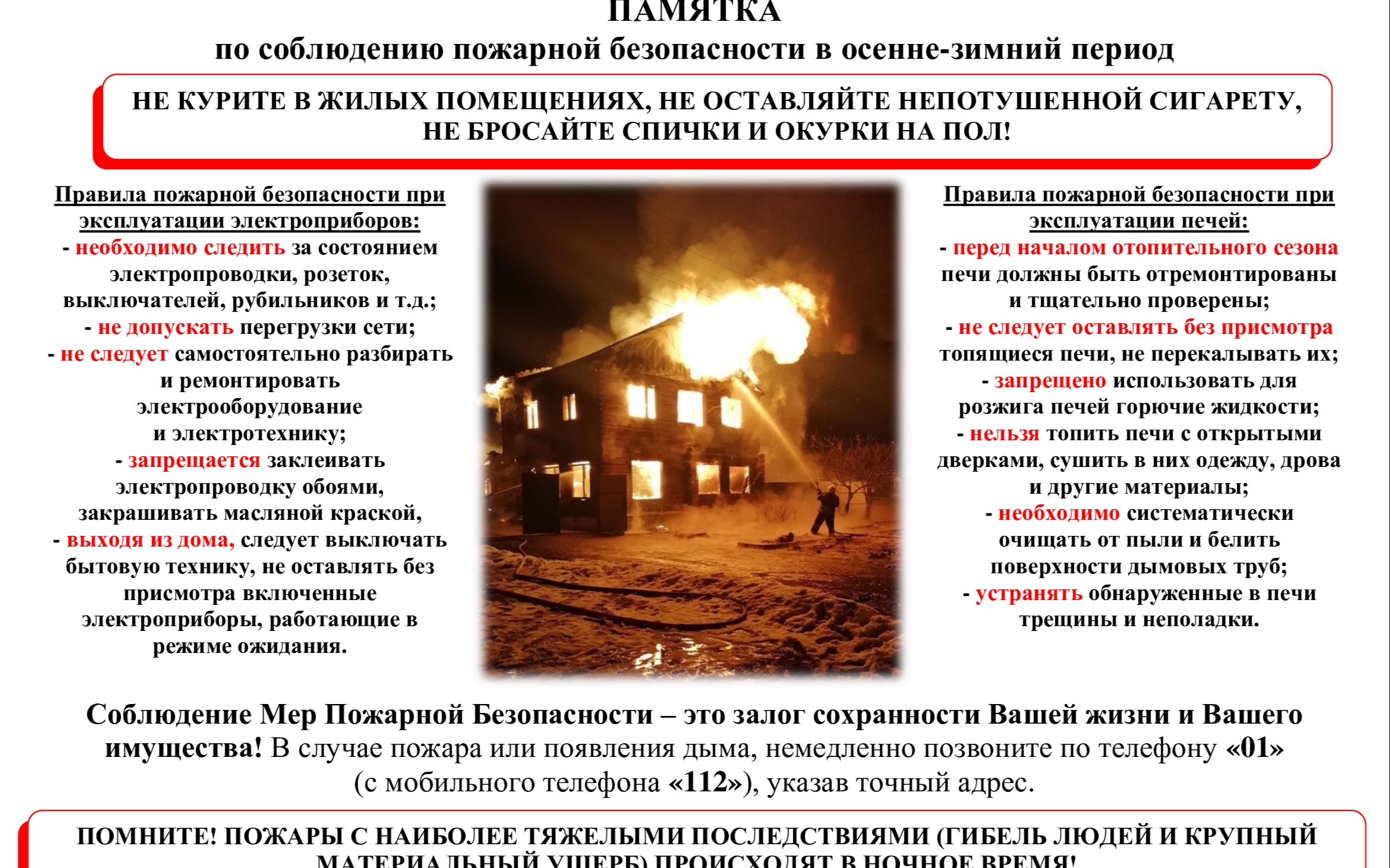 Памятка по пожарной безопасности